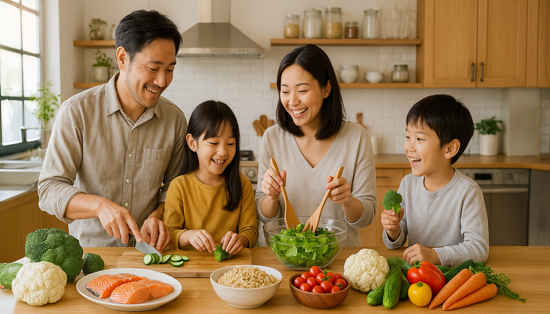 主食(ご飯やパン)、主菜(肉や魚)、副菜(野菜や豆類)をうまく組み合わせることが基本です。例えば、食事の一品に野菜が足りない場合、別の料理で補うようにするとよいでしょう。食事を作る際は、色とりどりの食材を使うことで、栄養素をバランスよく摂取できます。 - 食事の量を適切に調整する